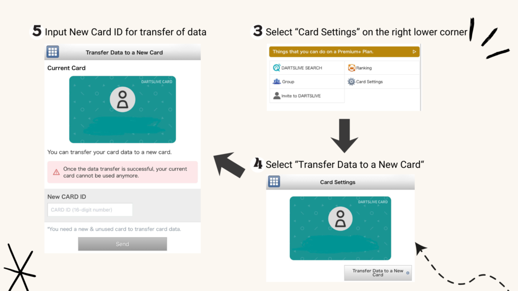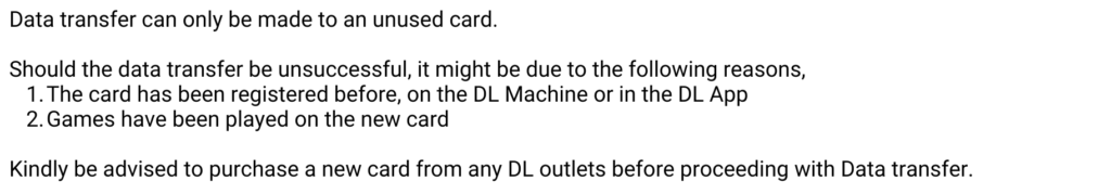 – Data transfer can only be done to an unused card (no games played, no account created, no card name)