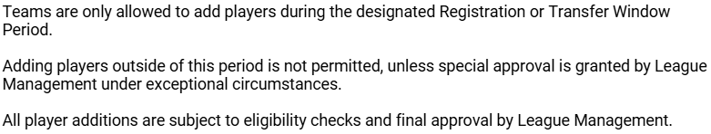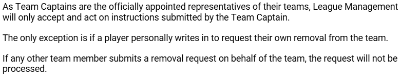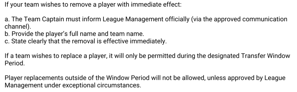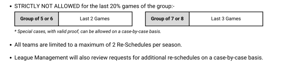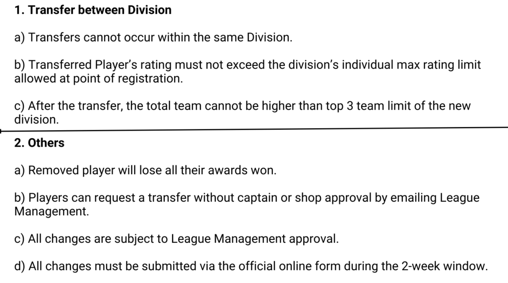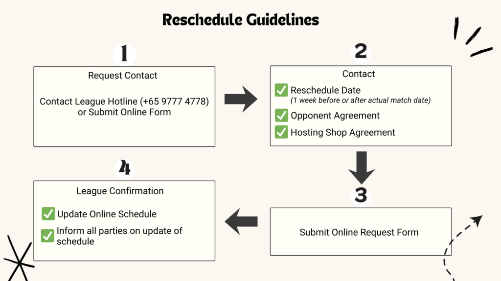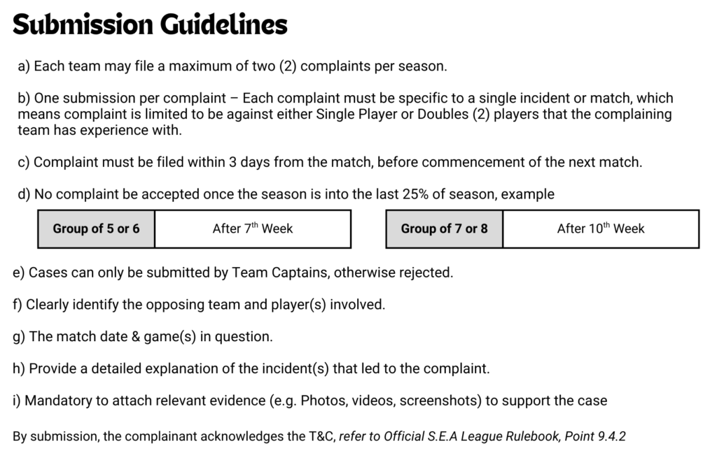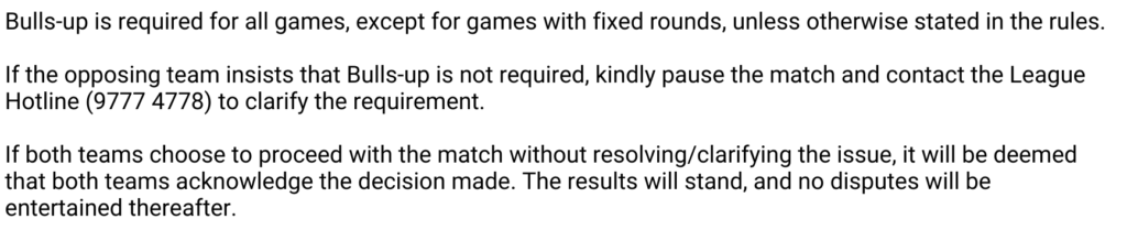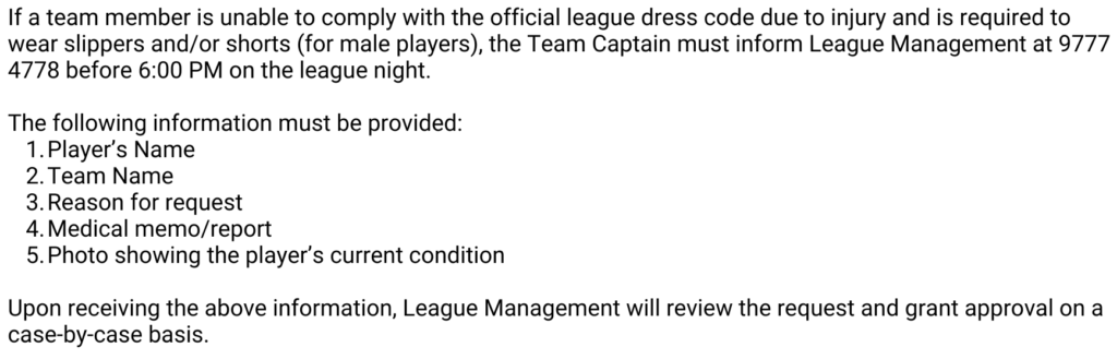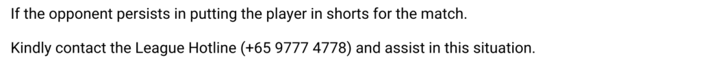 Kindly inform League Hotline (+65 9777 4778) with the following information;